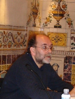 Després d’aquesta introducció, Taibo reflexiona sobre el paper de la Unió Europea, les futures ampliacions i els límits d’Europa. Segons el professor, Europa és un artifici conceptual, de límits imprecisos i arbitraris i la Unió Europea una associació de lliurecanvi que s’ha dotat d’un discurs de progrés del qual s’han apartat els elements negatius. No hi ha discursos crítics sobre la Unió; tots s’han dirigit cap els Estats Units o a cada estat per separat i això ha beneficiat la UE. Els europeus hem sucumbit a alguns mites com el del benestar econòmic (la UE com a model de capitalisme propi vinculat a l’estat del benestar), quan hom podria preguntar-se què en queda del model de capitalisme social després de vint anys de fort neoliberalisme; o el del compromís amb la justícia, la pau i la solidaritat. I el text constitucional, redactat bàsicament per conservadors i liberals, no resol els principals problemes com el dèficit democràtic, la resolució de les desigualtats econòmiques internes, el deure amb els qui queden fora, la immigració, Turquia, les relacions amb Rússia, etc. En definitiva, segons Taibo el projecte econòmic i polític de la Constitució remet a l’Europa dels mercaders i a l’Europa fortalesa, la qual cosa no farà res més que incrementar els problemes actuals. Per acabar, Carlos Taibo lamenta que no hi hagi hagut a Espanya cap discussió seriosa sobre l’ampliació ni la Constitució europees i en reclama un debat honest i obert. [Mireia Baylina] Fotografia : el professor Taibo en el decurs de la seva dissertació. |