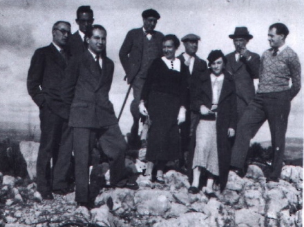 En la fotografia de febrer de 1935 apareixen diversos protagonistes de l'empenta inicial de la Barcino en el transcurs d'una sortida a l'ermita de Sant Pau de Sant Pere de Ribes; d'esquerra a dreta: Ramon d'Alòs-Moner, Joan Coromines, L. d'Alòs-Moner, Pau Vila, Hilde Stein, Josep Maria de Casacuberta, M. d'Alòs-Moner, Pompeu Fabra i Ramon Aramon (Arxiu Pere Coromines)