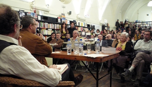 La presentació del llibre Gestión del paisaje: manual de protección, gestión y ordenación del paisaje coordinat per Jaume Busquets Fàbregas i Albert Cortina Ramos va tenir lloc als locals de la llibreria La Central del Raval el proppassat dimarts dia 10 de març. L'acte va aplegar més d’un centenar de persones interessades en aquest domini emergent relacionat amb la gestió del territori i del paisatge. El diàleg mantingut entre Joan Nogué, Director de l'Observatori del Paisatge, i el pintor Perico Pastor sobre La suggestió del paisatge, va servir per a refermar el valor de la gestió pública del paisatge i destacar l’interès de l'obra. En la fotografia facilitada per La Central podem identificar diversos dels trenta-vuit autors de l'obra els coordinadors inclosos. |