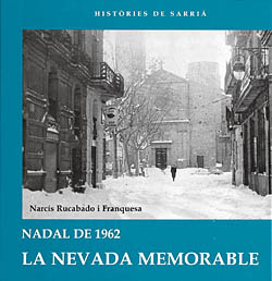 | Narcís Rucabado i Franquesa. Nadal de 1962, la nevada memorable. Vilamòs: El Mirador, 2008 (Històries de Sarrià, núm. 6); 72 p. ISBN: 978-84-612-1860-8. | Notícia de J. Burgueño : pàg. 1 |